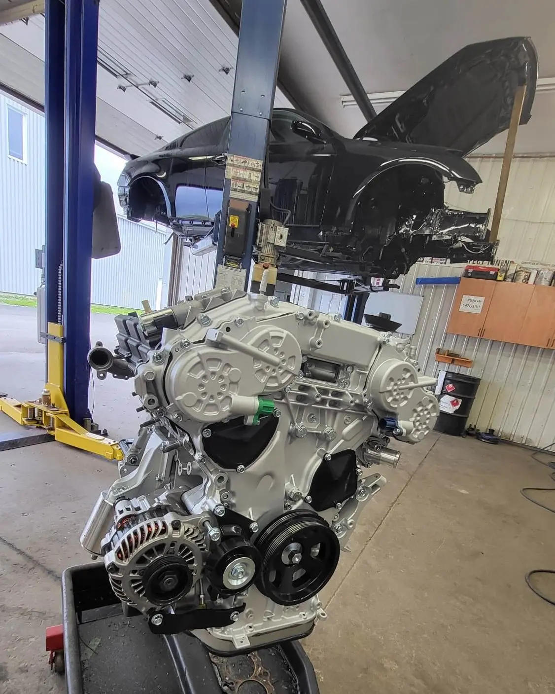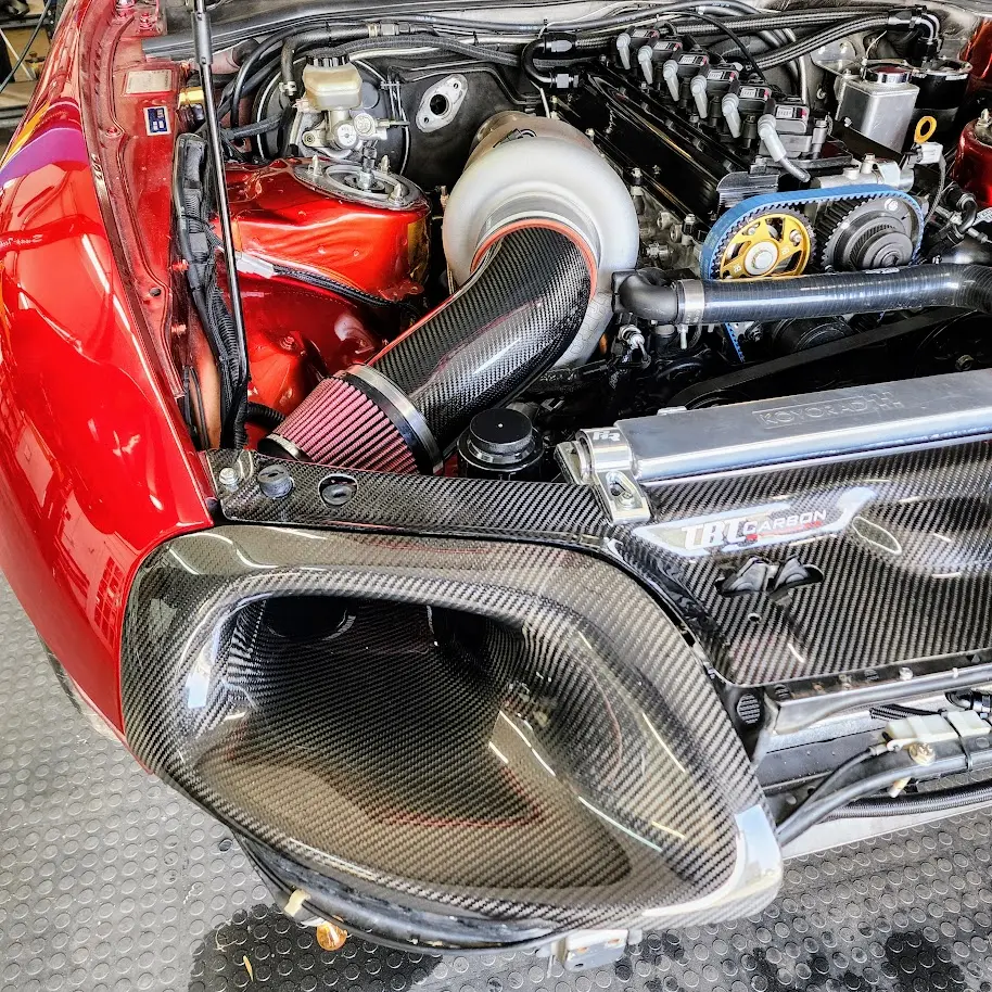 - The engine block is a stroker 3.4L 2JZGTE with billet main caps, forged pistons and rods. Built in-house.