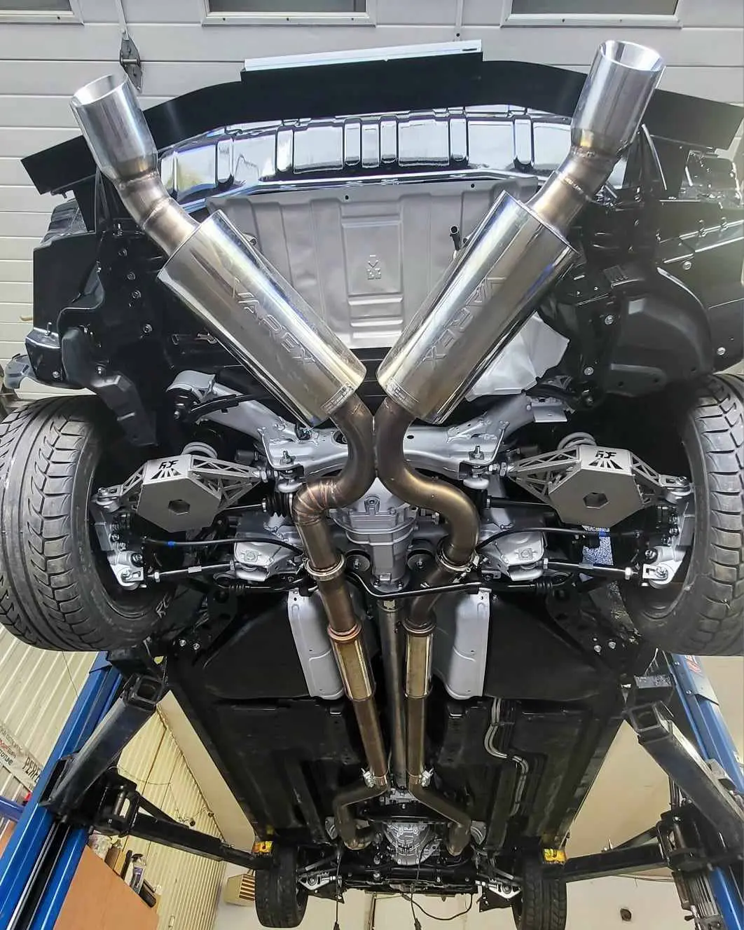 - We sourced a Garrett G45-1600 turbo, mated to a CNC machined PHR turbo manifold, and fabricated a full 4" stainless steel exhaust.